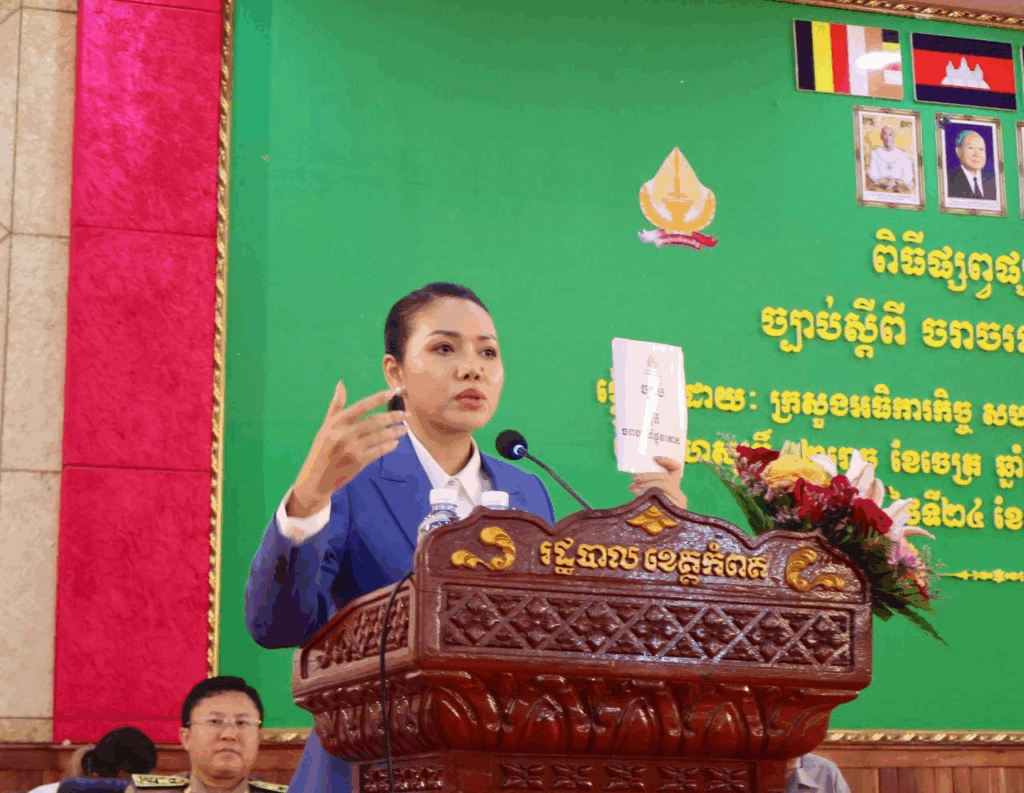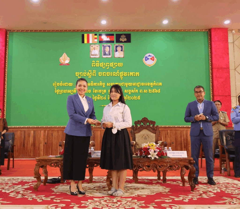 លោកជំទាវរដ្ឋលេខាធិការ វី ស្រីពៅ អញ្ជើញដឹកនាំគណៈប្រតិភូក្រសួងអធិការកិច្ច ចុះផ្សព្វផ្សាយច្បាប់ស្តីពីចរាចរណ៍ផ្លូវគោក នៅខេត្តកំពត