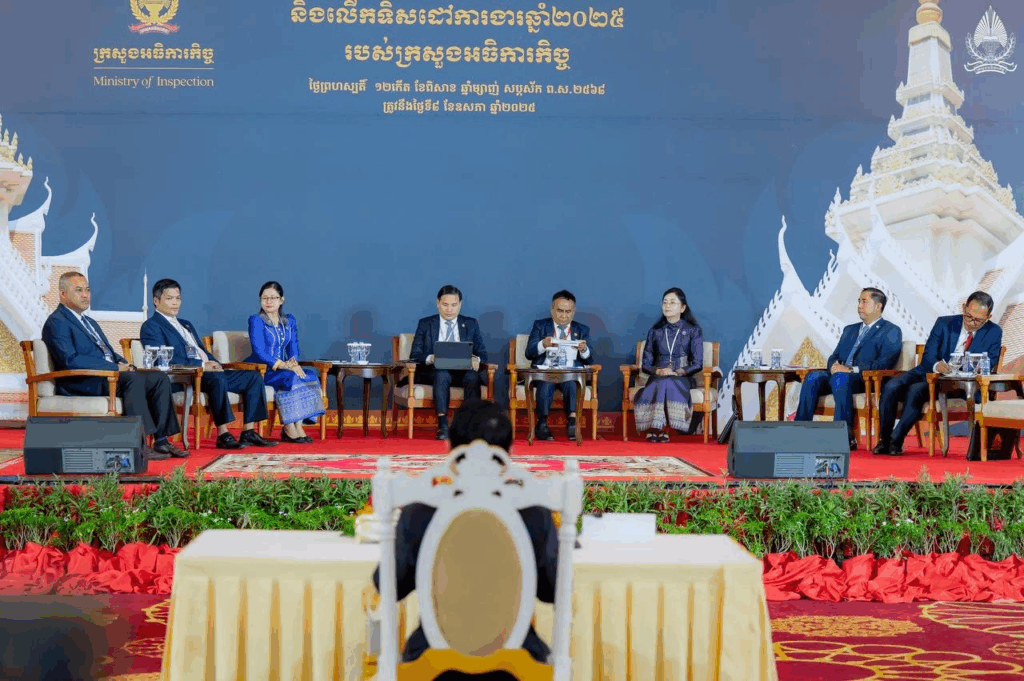 រាជធានីភ្នំពេញ ថ្ងៃទី០៨ ខែឧសភា ឆ្នាំ២០២៥ – ឯកឧត្តម សុខ សូកេន រដ្ឋមន្រ្តីក្រសួងអធិការកិច្ច បានអញ្ជើញជាអធិបតីក្នុងពិធីបើកសន្និបាតបូកសរុបលទ្ធផលការងារឆ្នាំ២០២៤ និងលើកទិសដៅការងារឆ្នាំ២០២៥ របស់ក្រសួងអធិការកិច្ច ដោយមានការអញ្ជើញចូលរួមពីឯកឧត្តម លោកជំទាវ ដែលជាថ្នាក់ដឹកនាំ និងមន្ត្រីរាជការនៃក្រសួងអធិការកិច្ច តំណាងក្រសួង-ស្ថាប័ន និងមន្ទីរអធិការកិច្ចរាជធានី-ខេត្ត សរុបប្រមាណ ៥៧៦ នាក់ នៅសណ្ឋាគាររ៉េស៊ីដង់សុខាភ្នំពេញ។