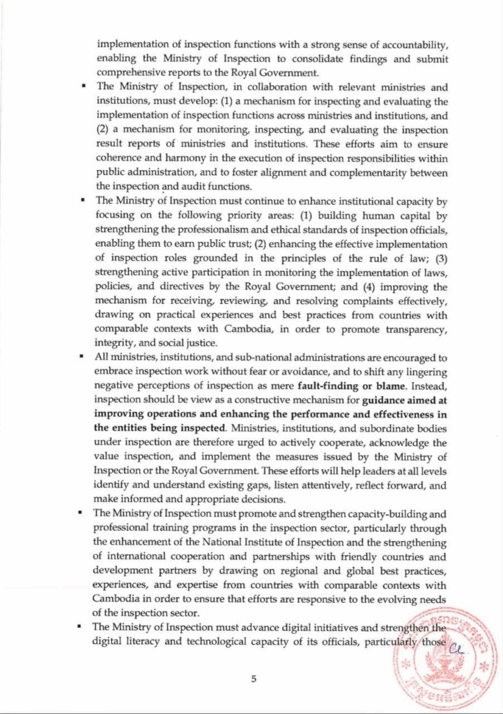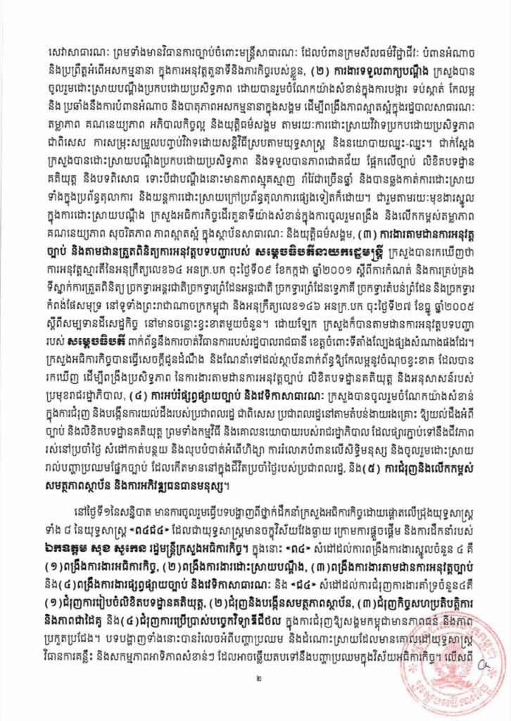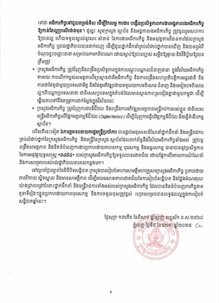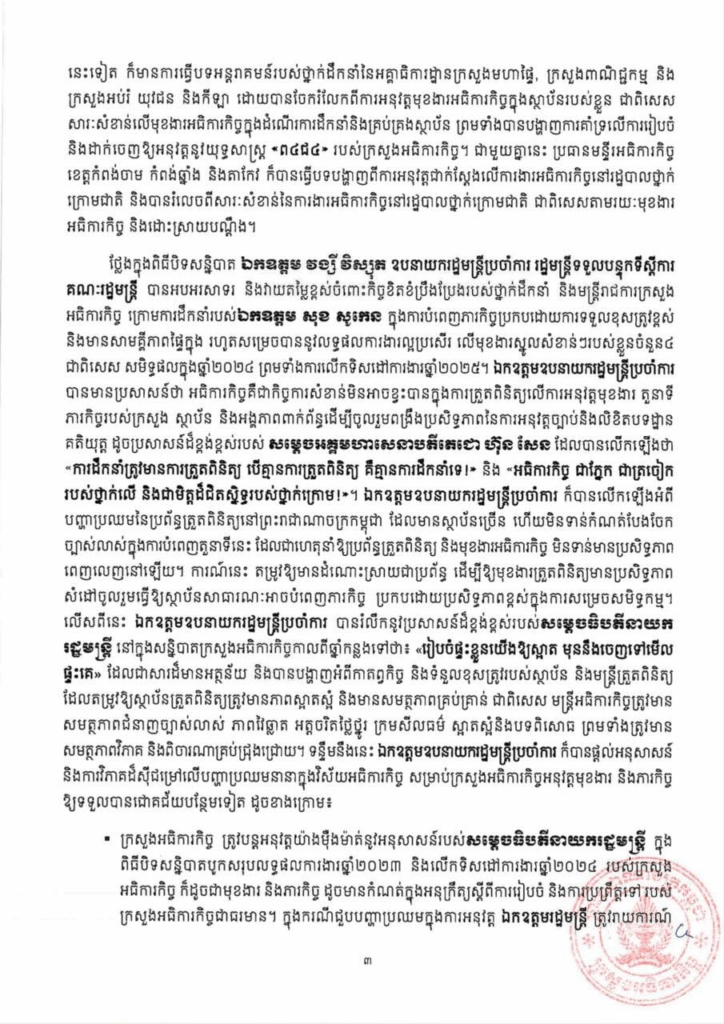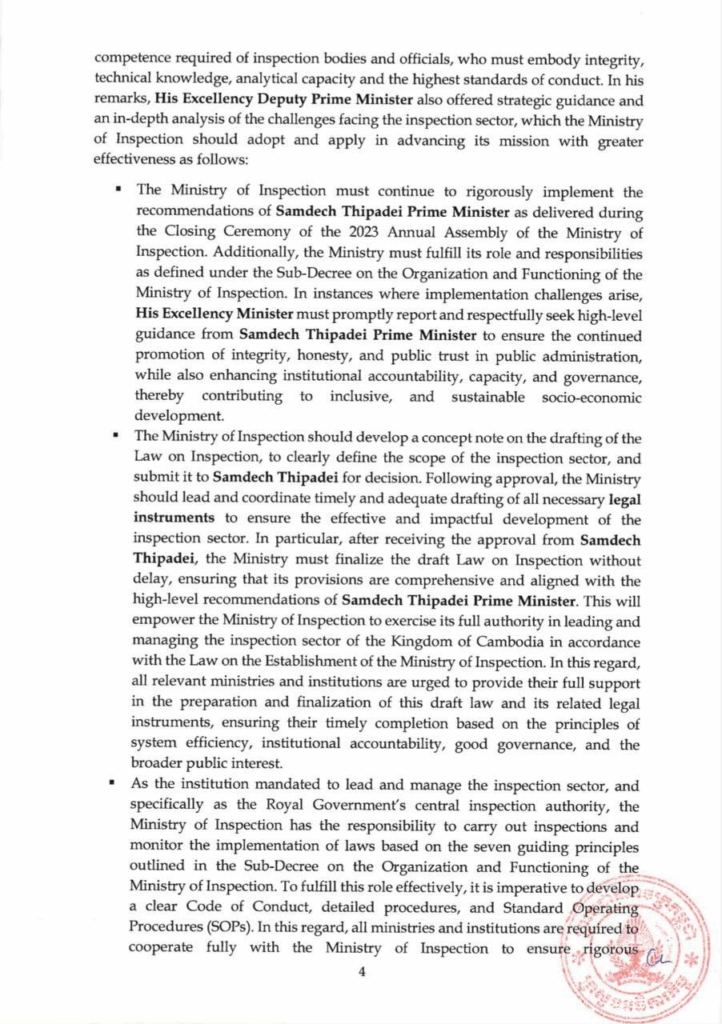 សេចក្ដីប្រកាសព័ត៌មាន ស្ដីពី លទ្ធផលនៃសន្និបាតបូកសរុបលទ្ធផលការងារឆ្នាំ២០២៤ និងលើកទិសដៅការងារឆ្នាំ២០២៥ របស់ក្រសួងអធិការកិច្ច សេចក្តីជូនដំណឹង ១០/០៥/២០២៥04/08/2025 FacebookXEmailLinkedIn សេចក្ដីប្រកាសព័ត៌មាន ស្ដីពី លទ្ធផលនៃសន្និបាតបូកសរុបលទ្ធផលការងារឆ្នាំ២០២៤ និងលើកទិសដៅការងារឆ្នាំ២០២៥ របស់ក្រសួងអធិការកិច្ច —- Press Release On the Outcomes of the 2024 Annual Assembly and 2025 Work Plan of the Ministry of Inspection FacebookXEmailLinkedIn