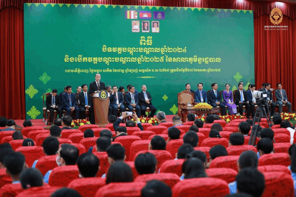 រាជធានីភ្នំពេញ ថ្ងៃទី២៧ ខែឧសភា ឆ្នាំ២០២៥ – ឯកឧត្តម ប្រាក់ ផាន់ណារ៉ា រដ្ឋលេខាធិការក្រសួងអធិការកិច្ច តំណាងដ៏ខ្ពង់ខ្ពស់ឯកឧត្តមរដ្ឋមន្ត្រី បានអញ្ជើញចូលរួមក្នុងពិធី “បិទវគ្គបណ្តុះបណ្តាលឆ្នាំ២០២៤ និងបើកវគ្គបណ្តុះបណ្តាលឆ្នាំ២០២៥ នៃសាលាភូមិន្ទរដ្ឋបាល” ក្រោមអធិបតីភាព ឯកឧត្តម ហ៊ុន ម៉ានី ឧបនាយករដ្ឋមន្ត្រី រដ្ឋមន្ត្រីក្រសួងមុខងារសាធារណៈ តំណាងដ៏ខ្ពង់ខ្ពស់សម្តេចមហាបវរធិបតី ហ៊ុន ម៉ាណែត នាយករដ្ឋមន្ត្រីនៃព្រះរាជាណាចក្រកម្ពុជា ដោយមានការអញ្ជើញចូលរួមពីតំណាងក្រសួង ស្ថាប័ន គណៈអភិបាលរាជធានីភ្នំពេញ-ខេត្ត គណៈគ្រប់គ្រងសាលា គ្រូឧទ្ទេស មន្ត្រីរាជការ សិស្សមន្ត្រី កម្មសិក្សាការី និងសិក្ខាកាមទាំងអស់របស់សាលាភូមិន្ទរដ្ឋបាល សរុបប្រមាណ ២,០០០អង្គ/នាក់។