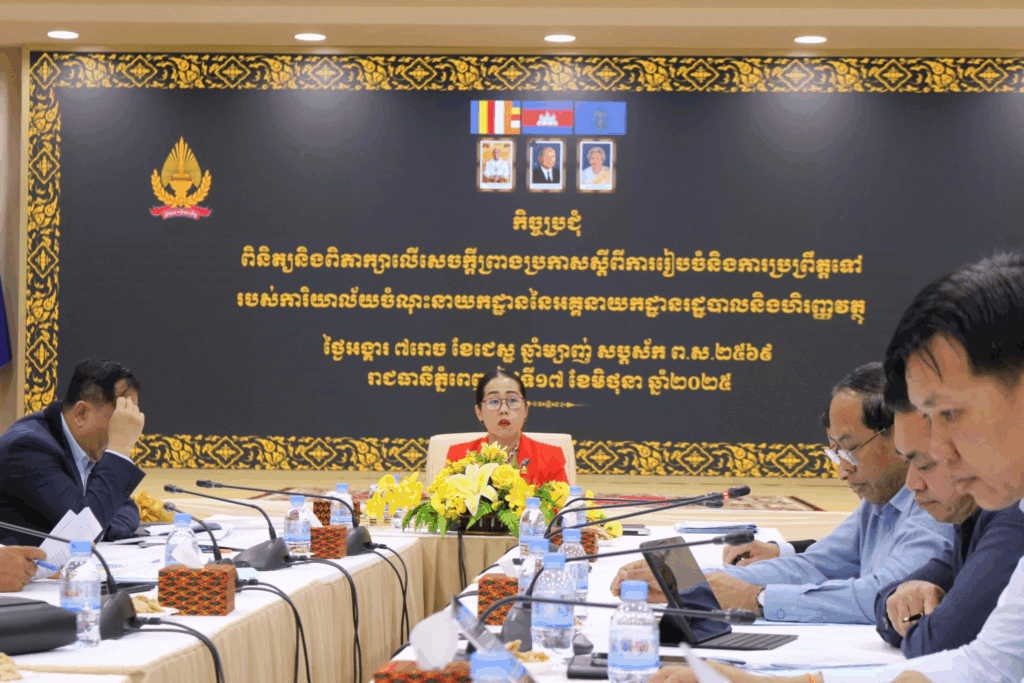 រាជធានីភ្នំពេញ រសៀលថ្ងៃទី១៧ ខែមិថុនា ឆ្នាំ២០២៥ – លោកជំទាវ សុខ វិឡាយ រដ្ឋលេខាធិការប្រចាំការក្រសួងអធិការកិច្ច បានបន្តដឹកនាំកិច្ចប្រជុំដេីម្បីពិនិត្យ និងពិភាក្សាបន្តលេីសេចក្តីព្រាងប្រកាសស្តីពីការរៀបចំ និងការប្រព្រឹត្តទៅរបស់ការិយាល័យចំណុះនាយកដ្ឋាននៃអគ្គនាយកដ្ឋានរដ្ឋបាលនិងហិរញ្ញវត្ថុ ដោយមានការចូលរួមពីឯកឧត្តមរដ្ឋលេខាធិការ អនុរដ្ឋលេខាធិការ ទីប្រឹក្សាក្រសួង អគ្គនាយកស្តីទី អគ្គនាយករង នាយករងនិងមន្រ្តីខុទ្ទកាល័យ ប្រធាននាយកដ្ឋានចំណុះអគ្គនាយកដ្ឋានរដ្ឋបាលនិងហិរញ្ញវត្ថុ និងក្រុមជំនួយការច្បាប់។