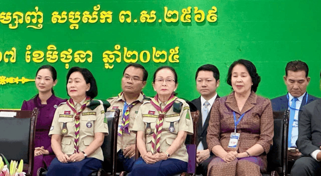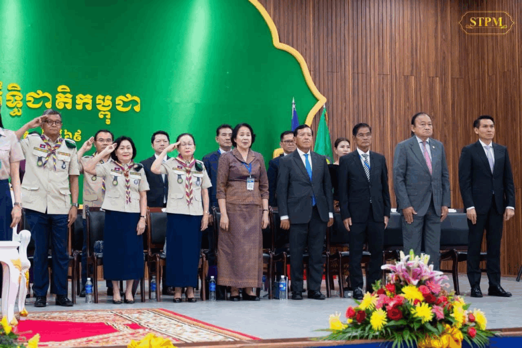 Phnom Penh, June 17, 2025 – H.E. Sok Soken, Minister of Inspection, Vice Chairman of the National Association of Cambodian Scouts, attended the Closing Ceremony of the Extraordinary General Assembly of the Cambodian National Scouts, under the high presidency of Samdech Moha Borvor Thipadei Hun Manet, Prime Minister of the Kingdom of Cambodia, and the First Lady Lok Chumteav Dr. Pich Chanmony HUN MANET, at the National Institute of Education.