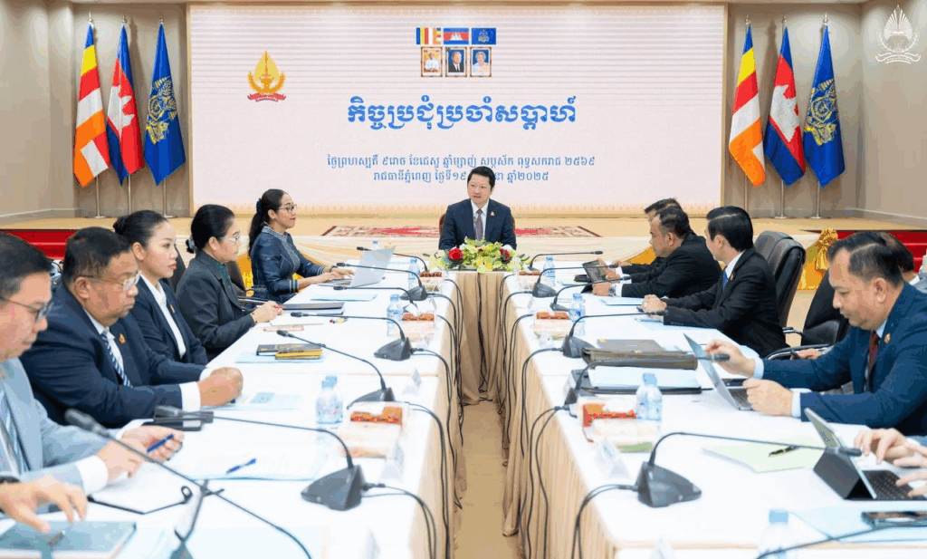 Phnom Penh, June 19, 2025 – H.E. Sok Soken, Minister of Inspection, presided over the weekly meeting to thoroughly review and discuss the Draft Prakas on the organization and functions of the bureaus under the General Department of Complaint Resolution, the General Department of Administration and Finance, the National Institute of Inspection, and the Department of Internal Audit. The meeting was attended by leaders and officials of the Ministry, at the Ministry of Inspection.