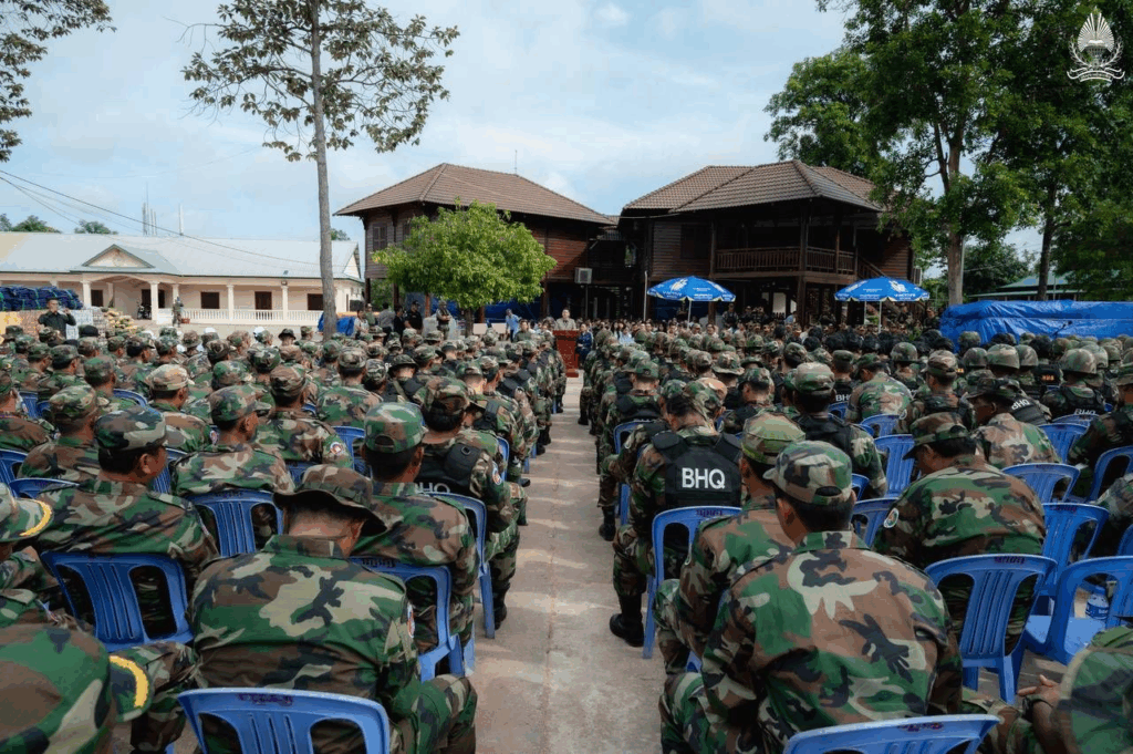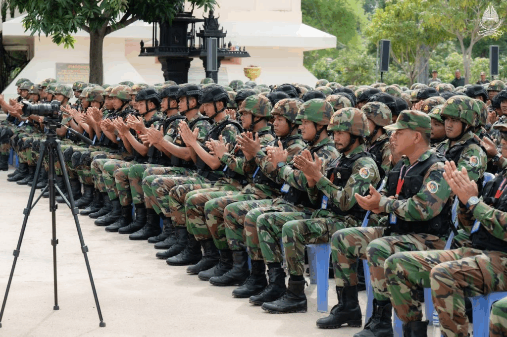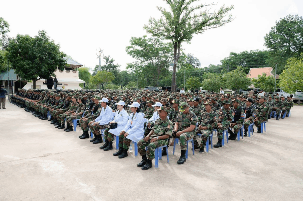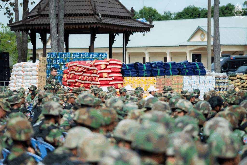 ខេត្តព្រះវិហារ ថ្ងៃទី៧ ខែកក្កដា ឆ្នាំ២០២៥ – ឯកឧត្តម សុខ សូកេន រដ្ឋមន្រ្តីក្រសួងអធិការកិច្ច បានអញ្ជើញដឹកនាំគណៈប្រតិភូក្រសួងចុះជួបសំណេះសំណាលសាកសួរសុខទុក្ខ ព្រមទាំងបាននាំយកមកនូវថវិកា គ្រឿងឧបភោគបរិភោគ និងសំភារៈប្រើប្រាស់ឧបត្ថម្ភដល់មេបញ្ជាការ មេបញ្ជាការរង នាយទាហាន នាយទាហានរង និងពលទាហានដែលកំពុងឈរជើងជួរមុខនៅបញ្ជាការដ្ឋានកងអង្គរក្ស (ទួល៩៥) ទិសប្រាសាទព្រះវិហារ ដោយមានការទទួលស្វាគមន៍យ៉ាងកក់ក្ដៅពីសំណាក់ ឯកឧត្តមនាយឧត្តមសេនីយ៍ផ្កាយមាស៤ កិត្តិសង្គហបណ្ឌិត ហ៊ីង ប៊ុនហៀង អគ្គមេបញ្ជាការរងនៃកងយោធពលខេមរភូមិន្ទ និងជាមេបញ្ជាការនៃបញ្ជាការដ្ឋានអង្គរក្ស ព្រមទាំងមេបញ្ជាការរង នាយទាហាន នាយទាហានរង ពលទាហាន និងកងកម្លាំងប្រដាប់អាវុធគ្រប់ប្រភេទជាច្រើនរូប។