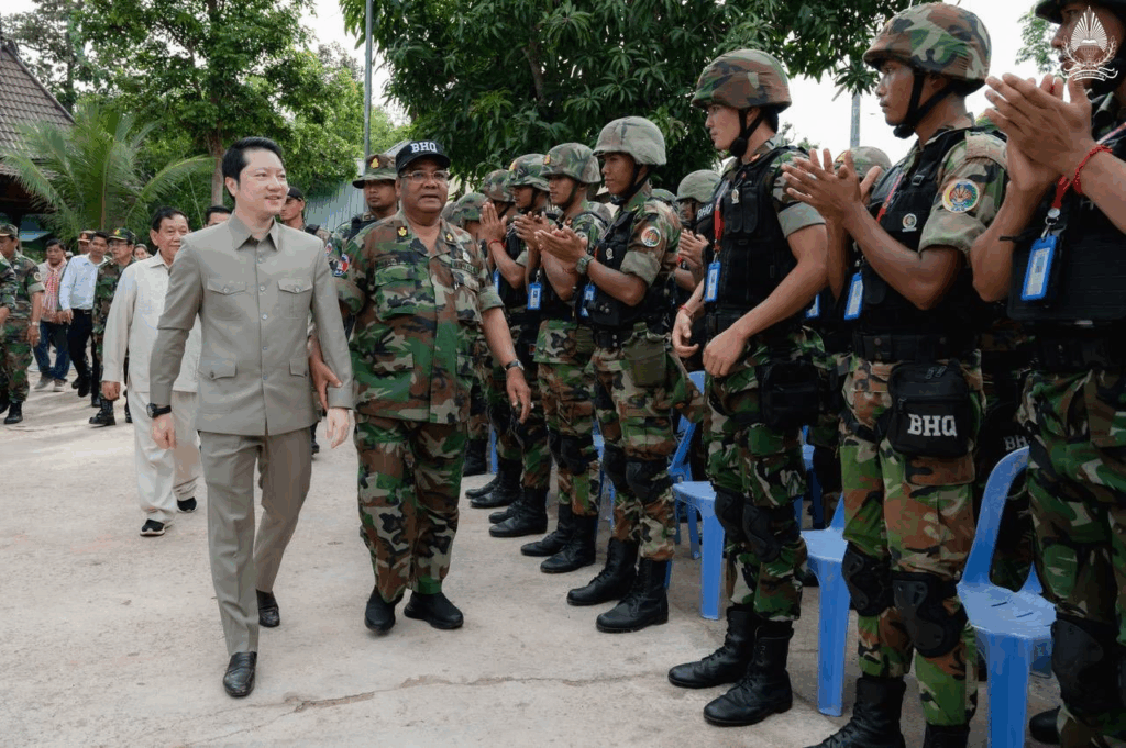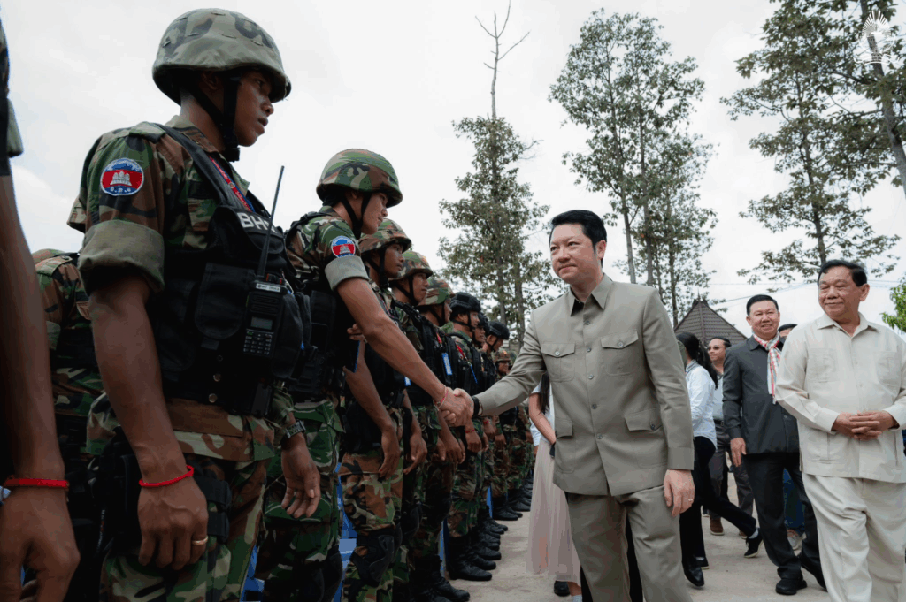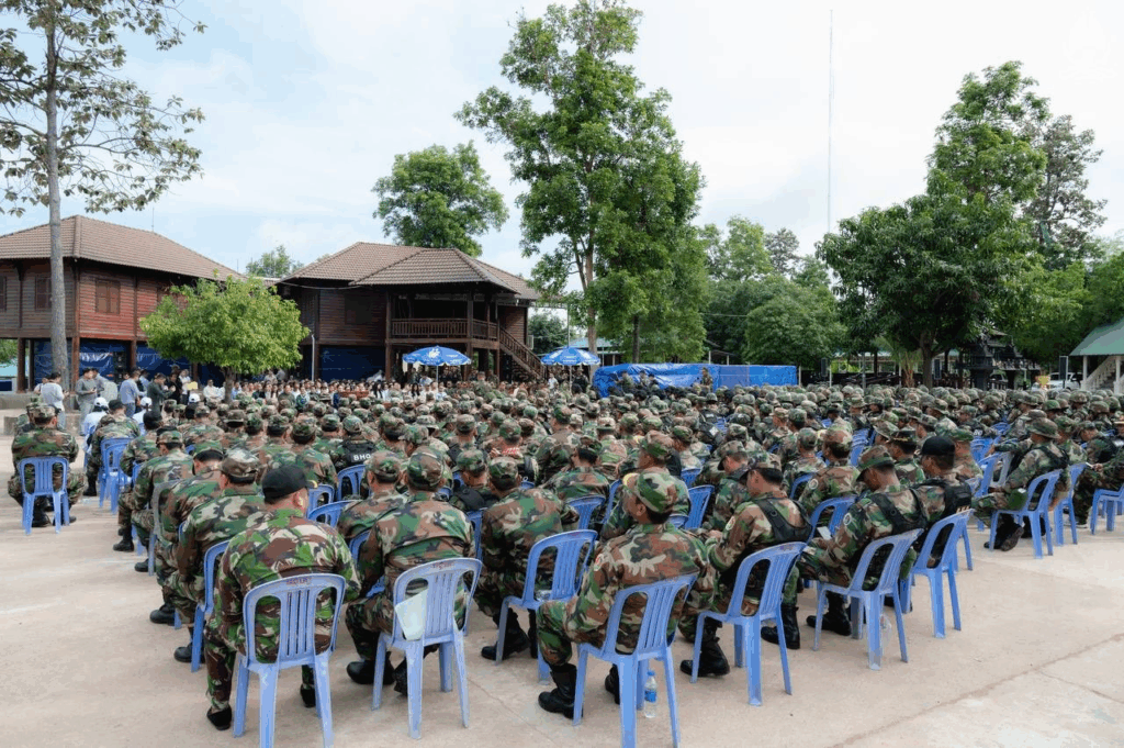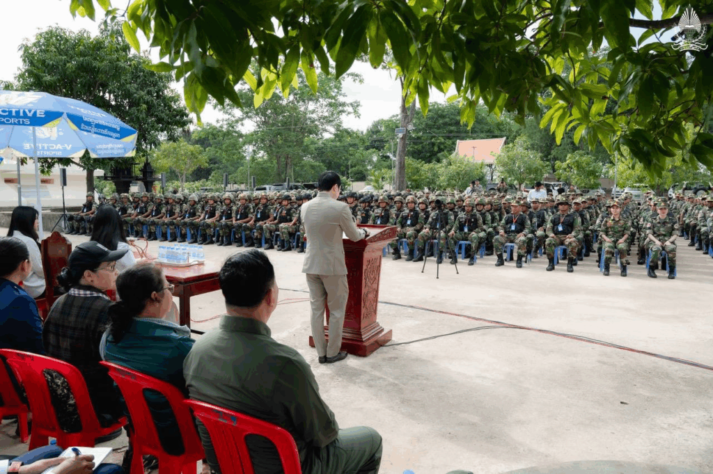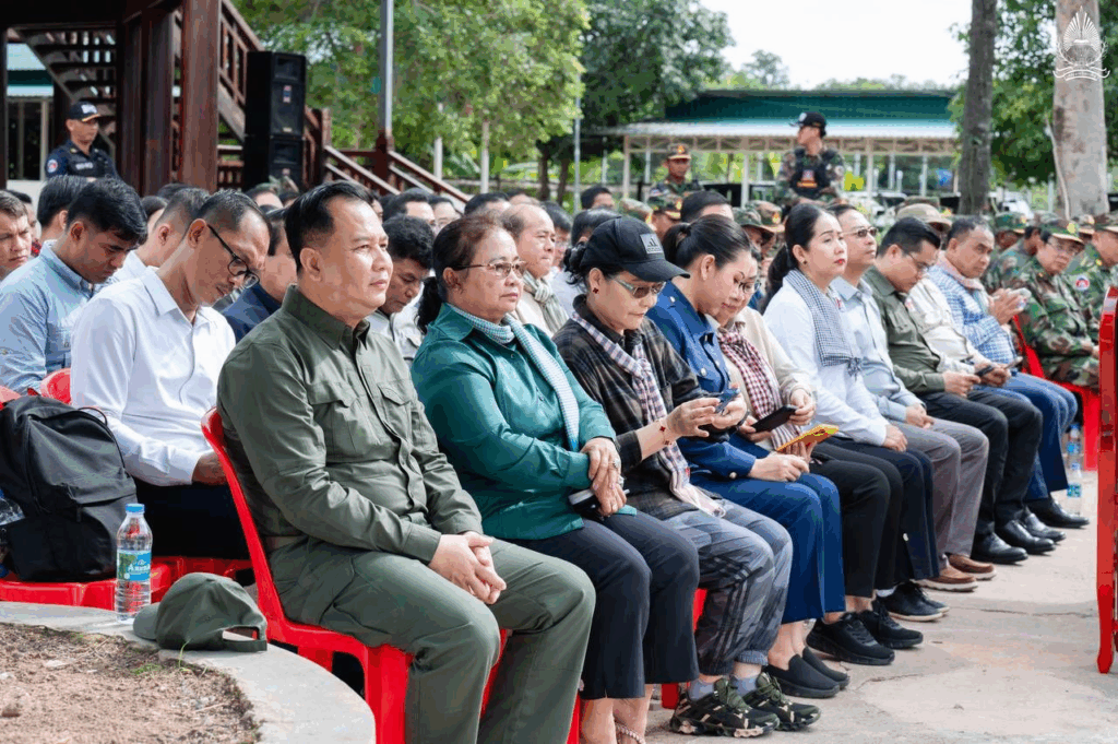 ខេត្តព្រះវិហារ ថ្ងៃទី៧ ខែកក្កដា ឆ្នាំ២០២៥ – ឯកឧត្តម សុខ សូកេន រដ្ឋមន្រ្តីក្រសួងអធិការកិច្ច បានអញ្ជើញដឹកនាំគណៈប្រតិភូក្រសួងចុះជួបសំណេះសំណាលសាកសួរសុខទុក្ខ ព្រមទាំងបាននាំយកមកនូវថវិកា គ្រឿងឧបភោគបរិភោគ និងសំភារៈប្រើប្រាស់ឧបត្ថម្ភដល់មេបញ្ជាការ មេបញ្ជាការរង នាយទាហាន នាយទាហានរង និងពលទាហានដែលកំពុងឈរជើងជួរមុខនៅបញ្ជាការដ្ឋានកងអង្គរក្ស (ទួល៩៥) ទិសប្រាសាទព្រះវិហារ ដោយមានការទទួលស្វាគមន៍យ៉ាងកក់ក្ដៅពីសំណាក់ ឯកឧត្តមនាយឧត្តមសេនីយ៍ផ្កាយមាស៤ កិត្តិសង្គហបណ្ឌិត ហ៊ីង ប៊ុនហៀង អគ្គមេបញ្ជាការរងនៃកងយោធពលខេមរភូមិន្ទ និងជាមេបញ្ជាការនៃបញ្ជាការដ្ឋានអង្គរក្ស ព្រមទាំងមេបញ្ជាការរង នាយទាហាន នាយទាហានរង ពលទាហាន និងកងកម្លាំងប្រដាប់អាវុធគ្រប់ប្រភេទជាច្រើនរូប។