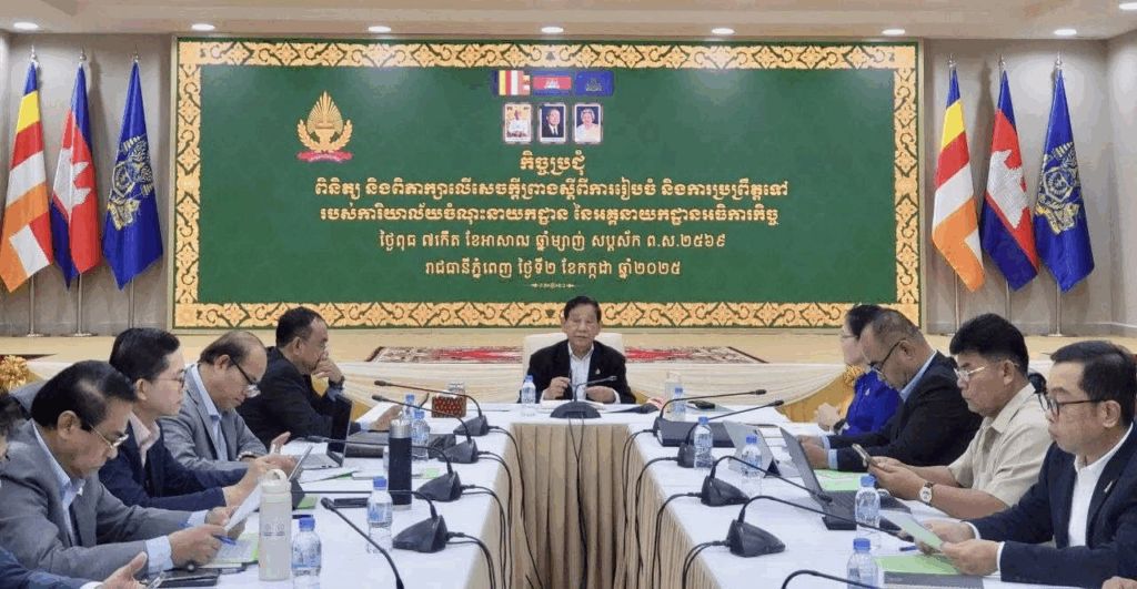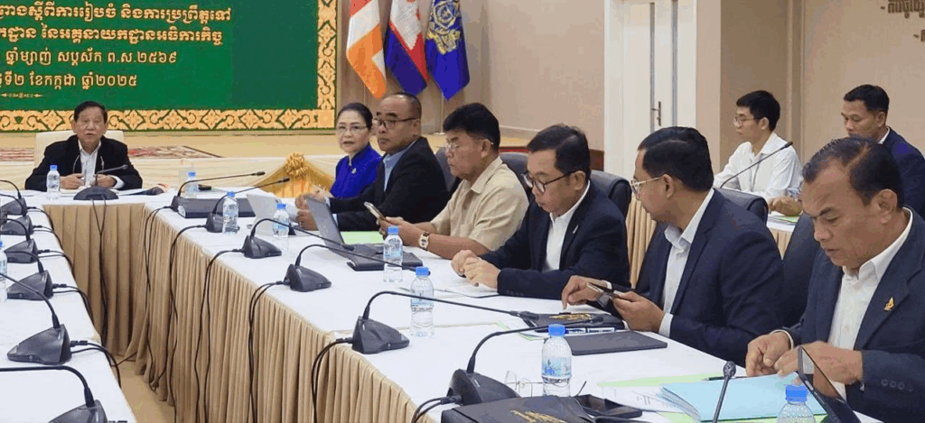 រាជធានីភ្នំពេញ ថ្ងៃទី២ ខែកក្កដា ឆ្នាំ២០២៥ – ឯកឧត្តម ឆេង សារឿន រដ្ឋលេខាធិការ និងជាប្រធានអនុក្រុមការងារពង្រឹងការងារអធិការកិច្ច និងតាមដានការអនុវត្តច្បាប់ បានដឹកនាំកិច្ចប្រជុំពិភាក្សាលើសេចក្តីព្រាងប្រកាសស្តីពីការរៀបចំនិងការប្រព្រឹត្តទៅរបស់ការិយាល័យចំណុះនាយកដ្ឋាននៃអគ្គនាយកដ្ឋានអធិការកិច្ច ដោយមានការអញ្ជើញចូលរួមពី ឯកឧត្តម លោកជំទាវ លោក ជាអនុប្រធាន សមាជិក និងលេខាធិការនៃក្រុមការងារ នៅទីស្ដីការក្រសួង។