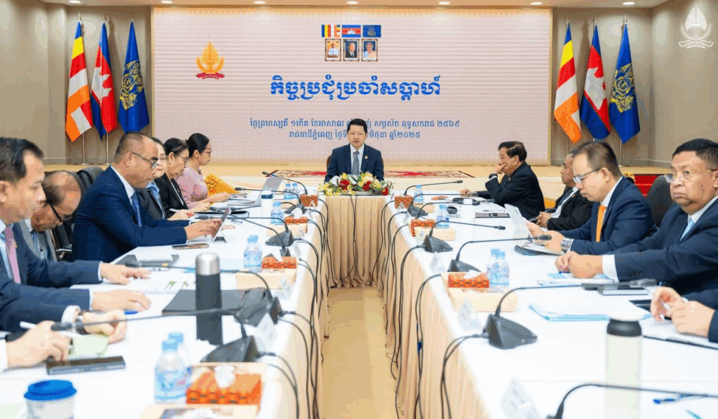 Phnom Penh, June 26, 2025 – H.E. Sok Soken, Minister of Inspection, presided over the weekly meeting to review and finalize the Draft Prakas on the organization and functions of the bureaus under the General Department of Complaint Resolution, the General Department of Administration and Finance, the National Institute of Inspection, and the Department of Internal Audit. The meeting was attended by leaders and officials of the Ministry, at the Ministry of Inspection.