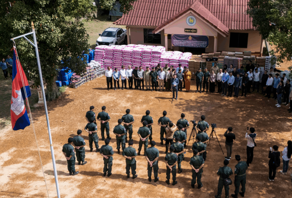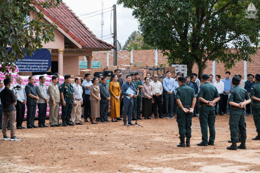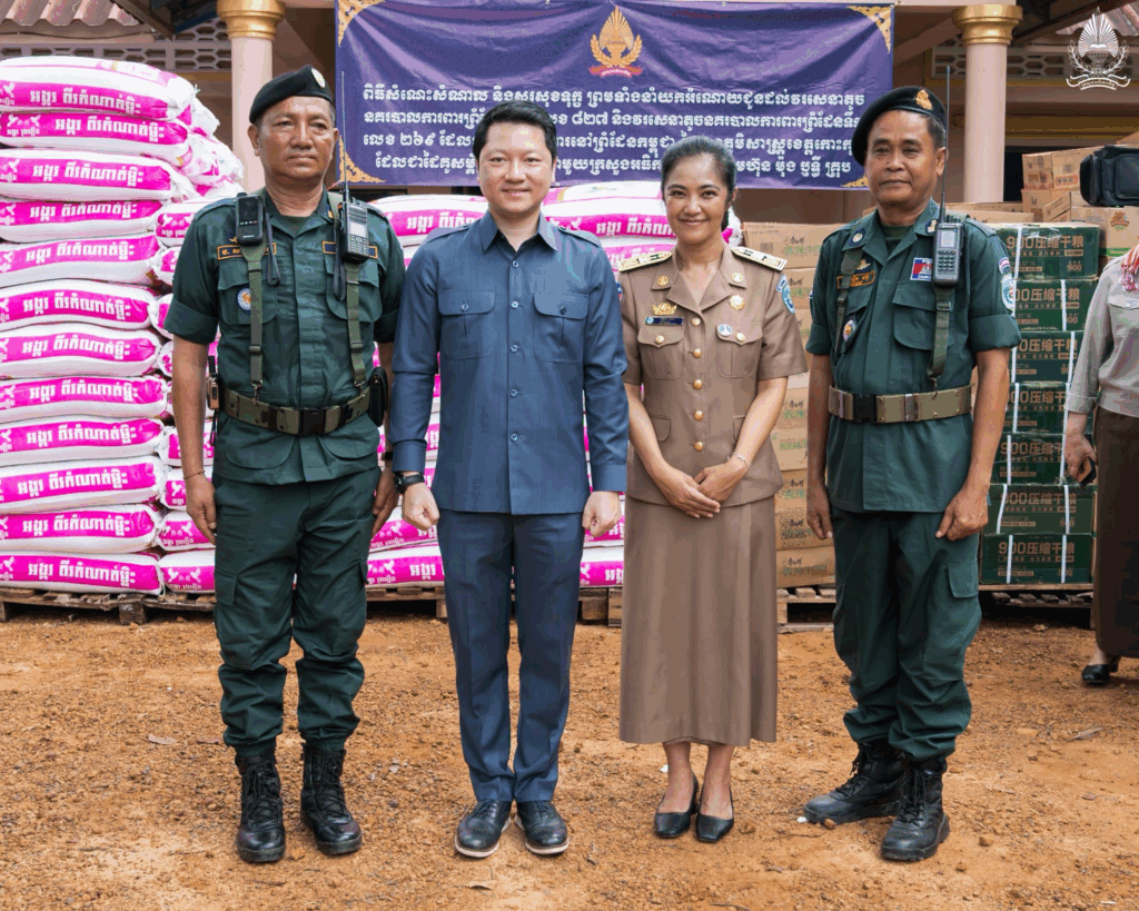 ខេត្តកោះកុង ថ្ងៃទី២១ ខែសីហា ឆ្នាំ២០២៥ – ឯកឧត្តម សុខ សូកេន រដ្ឋមន្រ្តីក្រសួងអធិការកិច្ច បានដឹកនាំគណៈប្រតិភូក្រសួង ចុះជួបសំណេះសំណាល និងសាកសួរសុខទុក្ខ ព្រមទាំងបាននាំយកអំណោយជាសម្ភារៈបរិក្ខារប្រើប្រាស់ គ្រឿងឧបភោគបរិភោគប្រគល់ជូនដល់វរសេនាតូចនគរបាលការពារព្រំដែនគោកលេខ ៨២៧ និងវរសេនាតូចនគរបាលការពារព្រំដែនទឹកលេខ ២៦៩ ដែលឈរជើងការពារនៅព្រំដែនកម្ពុជា-ថៃ ក្នុងភូមិសាស្ត្រខេត្តកោះកុង ដែលជាដៃគូសម្ព័ន្ធមេត្រីភាពជាមួយក្រសួងអធិការកិច្ច និងក្រុមហ៊ុន ម៉ុង ឫទ្ធីគ្រុប។ កម្មវិធីដ៏មានអត្ថន័យនេះក៏មានការអញ្ជើញចូលរួមពី លោកជំទាវ មិថុនា ភូថង រដ្ឋលេខាធិការក្រសួងកិច្ចការនារី, ឧកញ៉ា ម៉ុង ចាន់ថុល អគ្គនាយករង ក្រុមហ៊ុន ម៉ុង ឫទ្ធីគ្រុប និងការស្វាគមន៍យ៉ាងកក់ក្ដៅពី ឯកឧត្តម ទូច ពលៈ ប្រធាននាយកដ្ឋាននគរបាលការពារព្រំដែនទឹក អគ្គលេខាធិការរងគណៈកម្មការជាតិសន្តិសុខលំហសមុទ្រ និងជាមេបញ្ជាការរងអចិន្ត្រៃយ៍នគរបាលជាតិប្រចាំទិសភូមិភាគ៣។