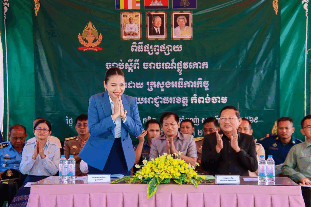 ខេត្តកំពង់ចាម ថ្ងៃទី១៤ ខែវិច្ឆិកា ឆ្នាំ២០២៥ – លោកជំទាវ វី ស្រីពៅ រដ្ឋលេខាធិការក្រសួងអធិការកិច្ច បានអញ្ជើញដឹកនាំគណៈប្រតិភូក្រសួងអធិការកិច្ច ចុះផ្សព្វផ្សាយច្បាប់ស្តីពីចរាចរណ៍ផ្លូវគោក ជូនដល់យុវជនសិស្សានុសិស្ស សរុប ៣៦៩នាក់ (ស្រី ២២៧នាក់) ស្ថិតនៅវិទ្យាល័យ ប៊ុនរ៉ានី ហ៊ុនសែនស្ពឺ ស្រុកចំការលើ ដោយរួមសហការជាមួយអាជ្ញាធរខេត្តកំពង់ចាម និងមានការចូលរួមឆ្លើយបំភ្លឺជូនអង្គពិធីពីមន្ដ្រីជំនាញមកពីមន្ទីរសាធារណការ និងដឹកជញ្ជូនខេត្ត ព្រមទាំងតំណាងស្នងការនគរបាលខេត្តកំពង់ចាមផងដែរ។