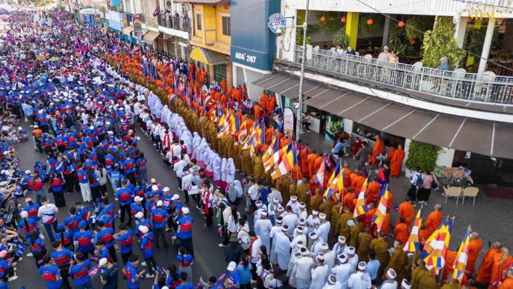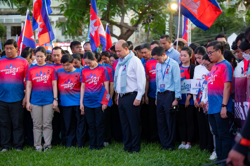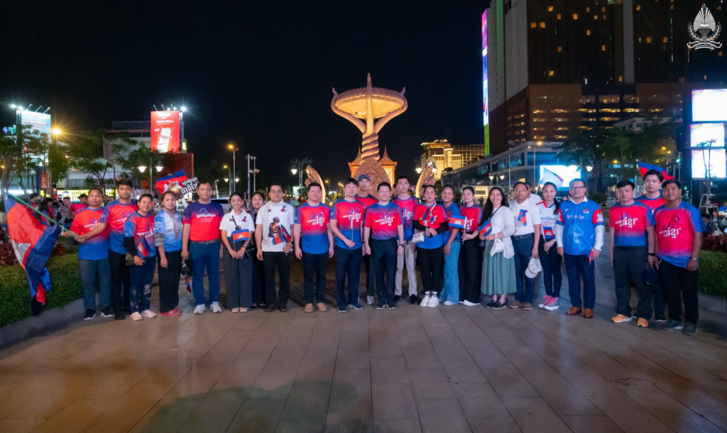H.E. SOK Soken, Minister of Inspection, Member of the Standing Committee of the Central Committee of the Union of Youth Federations of Cambodia (UYFC), together with leaders and members of the UYFC from the inspection sector, participated in the “March for Peace” event, under the presidency of H.E. Hun Many, Deputy Prime Minister, Minister of Civil Service, President of the UYFC, commencing from the Night Market area and proceeding on foot toward the Independence Monument. The objective of this event was to convey a clear message to the international community, including the people of Thailand, that Cambodia does not seek war, but rather aspires to peace, reconciliation, and the rebuilding of mutual trust, with a view to ending acts of destruction affecting the peoples and nations of both countries.