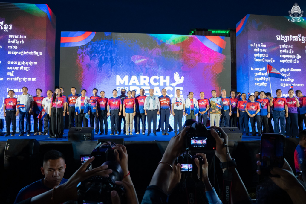 ឯកឧត្តម សុខ សូកេន រដ្ឋមន្រ្តីក្រសួងអធិការកិច្ច និងជាសមាជិកគណៈអចិន្រ្តៃយ៍នៃគណៈកម្មាធិការកណ្ដាល សហភាពសហព័ន្ធយុវជនកម្ពុជា (ស.ស.យ.ក.) រួមជាមួយថ្នាក់ដឹកនាំ និងសមាជិក សមាជិកា ស.ស.យ.ក. វិស័យអធិការកិច្ច បានអញ្ជើញចូលរួមក្នុងកម្មវិធី «ដើរដើម្បីសន្តិភាព» (March for Peace) ក្រោមអធិបតីភាព ឯកឧត្តម ហ៊ុន ម៉ានី ឧបនាយករដ្ឋមន្ត្រី រដ្ឋមន្ត្រីក្រសួងមុខងារសាធារណៈ និងជាប្រធានស.ស.យ.ក. នៅបរិវេណផ្សាររាត្រី ដែលធ្វើដំណើរដោយដើរថ្មើរជើងឆ្ពោះទៅកាន់ វិមានឯករាជ្យ។ គោលបំណងនៃកម្មវិធីនេះគឺដើម្បីបង្ហាញទៅអន្តរជាតិ រួមទាំងប្រជាជនថៃផងដែរថា កម្ពុជាមិនត្រូវការសង្គ្រាម កម្ពុជាចង់បានសុខសន្តិភាព ត្រូវការការផ្សះផ្សារ ដើម្បីកសាងជំនឿទុកចិត្តសារជាថ្មី និងបញ្ចប់វិនាសកម្មទាំងឡាយលើប្រជាជាតិប្រទេសទាំងពីរ។