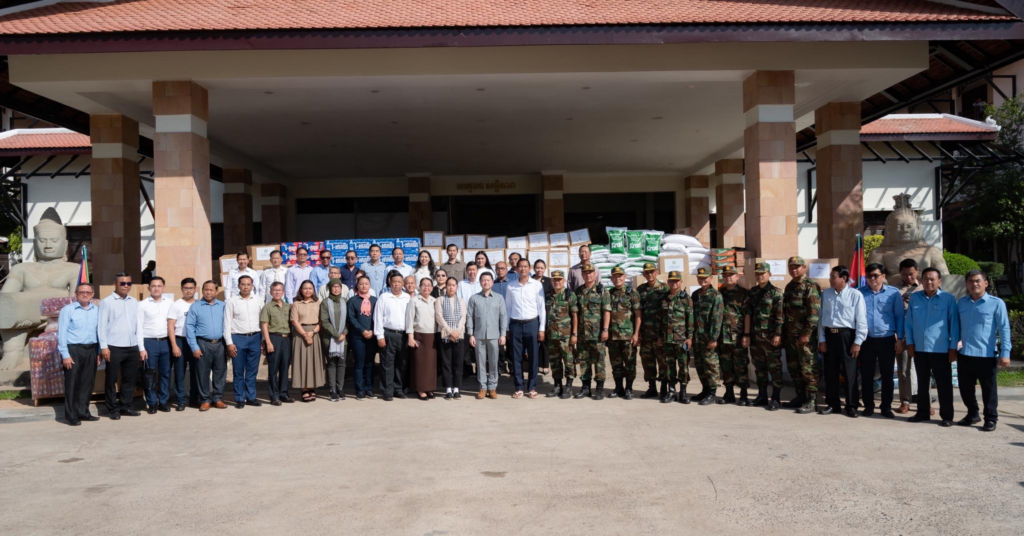 H.E. SOK Soken, Minister of Inspection, led a delegation of the Ministry of Inspection to extend warm regards and deliver precious humanitarian assistance from Samdech Akka Moha Sena Padei Techo HUN Sen, President of the Senate of the Kingdom of Cambodia, Samdech Kittiprittbandit BUN Rany Hun Sen, and Samdech Moha Borvor Thipadei HUN Manet, Prime Minister of the Kingdom of Cambodia, and the First Lady Lok Chumteav Dr. PICH Chanmony Hun Manet, comprising food supplies and other essential materials, to the Siem Reap Provincial Administration, upon the official reception by H.E. PRAK Sophoan, Governor of the Siem Reap Provincial Administration, for distribution to displaced citizens who have been evacuated to safe areas, as well as to the armed forces of Military Region 4 stationed in Siem Reap Province, in support of the brave frontline troops safeguarding Cambodia’s sovereignty and territorial integrity against Thai aggression. This humanitarian mission and support for the brave armed forces also received generous contributions from the leaders, civil servants and staff of the Ministry of Inspection, along with various donors and companies including SOMA Group, VATTANAC BREWERY CO., LTD., OUDONG INTERNATIONAL DEVELOPMENT (CAMBODIA) CO., LTD., LY LY FOOD INDUSTRY CO., LTD., and ASEAN Group. This generous gesture and profound sense of patriotism stand as a testament to the spirit of solidarity among Cambodians in helping Cambodians, in the cause of national defense and humanitarian assistance to the people.