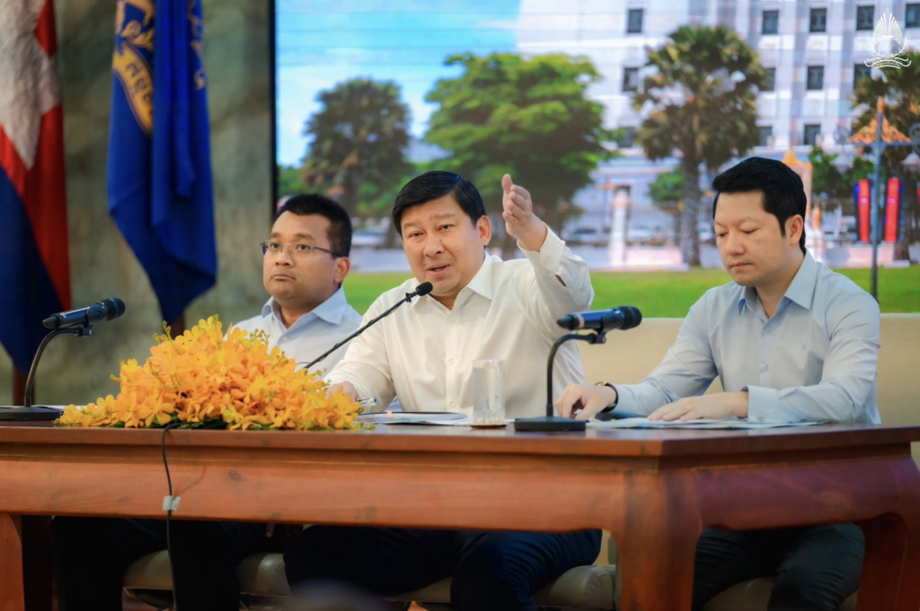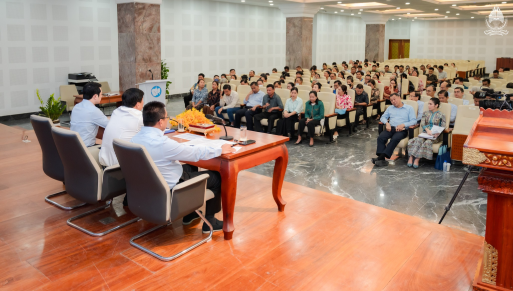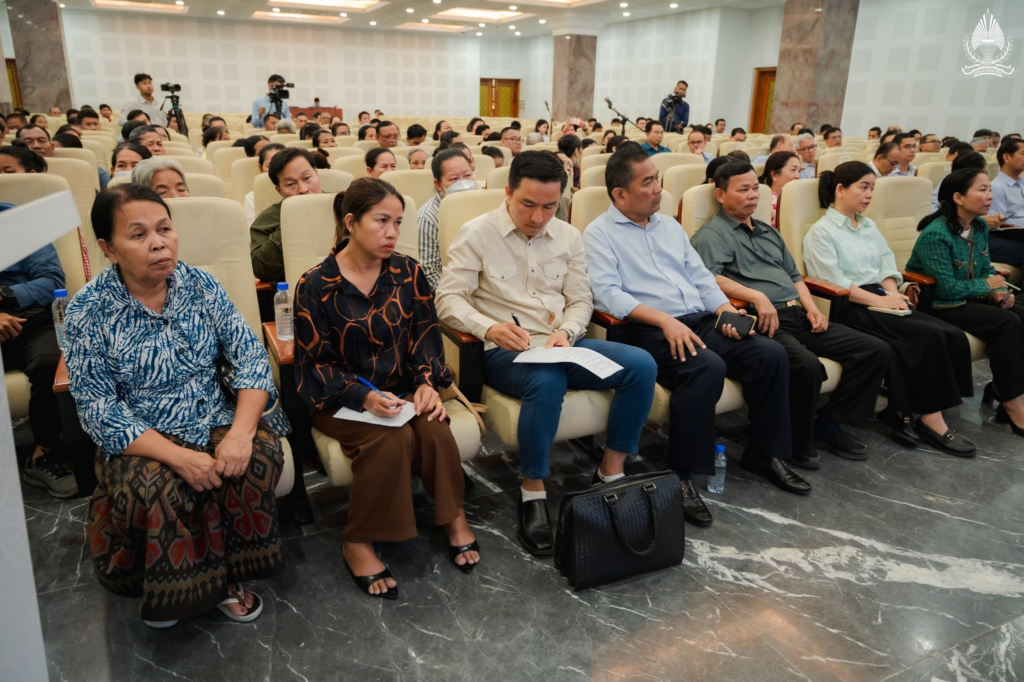 H.E. SOK Soken, Minister of Inspection, together with H.E. PENG Ponea, Minister of Public Works and Transport, accompanied H.E. SAY Samal, Deputy Prime Minister, Minister of Land Management Urban Planning and Construction, to preside over and lead an inter-ministerial meeting to address the case of the Samrong railway station depot land involving residents in Phnom Penh, held at the Ministry of Land Management, Urban Planning and Construction, with the participation of Excellencies, senior officials from relevant ministries and institutions, and numerous citizens.
