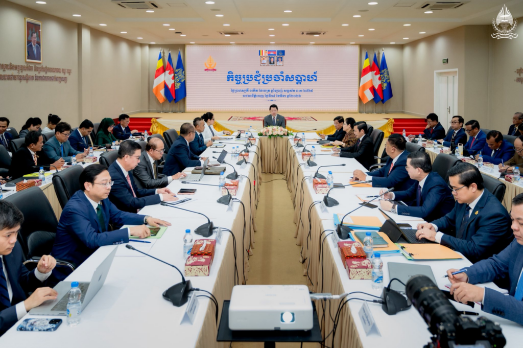 H.E. SOK Soken, Minister of Inspection, chaired the weekly meeting to review and monitor the progress of the preparation of the draft Prakas on the Code of Conduct for officials and the Internal Regulations of the Ministry of Inspection, the action plan for inspection work and monitoring regulatory compliance, as well as the Concept Note for drafting the Law on Inspection, with the participation of leaders and officials, at the Ministry.