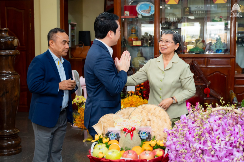 H.E. SOK Soken, Minister of Inspection, and Lok Chumteav, together with Ministry leaders, paid a courtesy call and extended New Year wishes to Samdech Kittisangahapundit MEN Sam An, Supreme Advisor to His Majesty the King of the Kingdom of Cambodia, on the occasion of the upcoming Khmer New Year, the Year of the Horse, B.E. 2569, at Samdech’s residence.